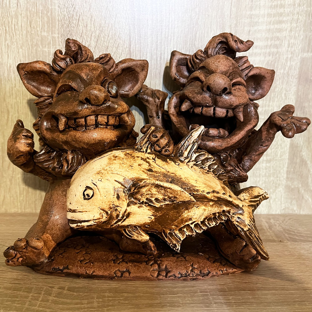 【特注】シーサーとGTがであった~。:メス(ウインク)オス(ニコニコ)ハイタッチver.2