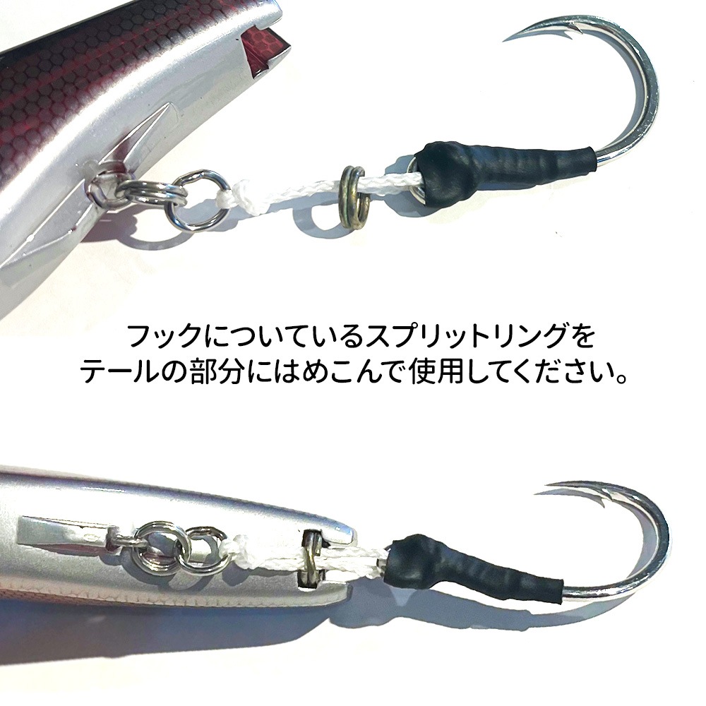 使用する時はフックについているスプリットリングをテールの部分にはめこんで使用してください。